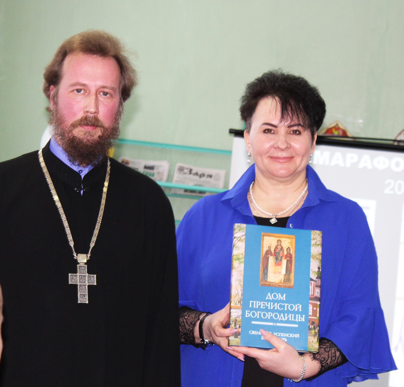 Также она выразила благодарность благочинному Карачевского округа протоиерею Владимиру Сафронову за подаренную библиотеке книгу «Дом Пречистой Богородицы», а также всем читателям, принявшим активное участие в этой акции. Марина Ивановна уверена, что все подаренные книги найдут своего благодарного читателя и будут востребованы юными поколениями детей.