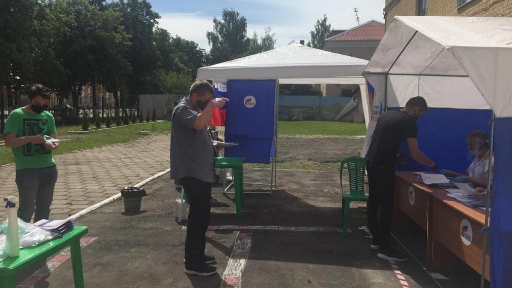 В целях безопасности брянцы надевают защитные маски и перчатки, соблюдают социальную дистанцию. Участники голосования стараются не контактировать друг с другом.