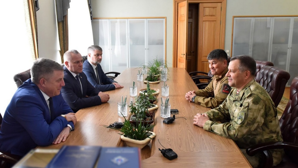 Состоялась встреча Губернатора Александра Богомаза с командующим Центральным округом Росгвардии генерал-полковником Александром Поповым. В мероприятии также приняли участие председатель областной Думы Валентин Суббот, главный федеральный инспектор по региону Андрей Дьячук и начальник Регионального Управления Росгвардии Иван Ванчугов.