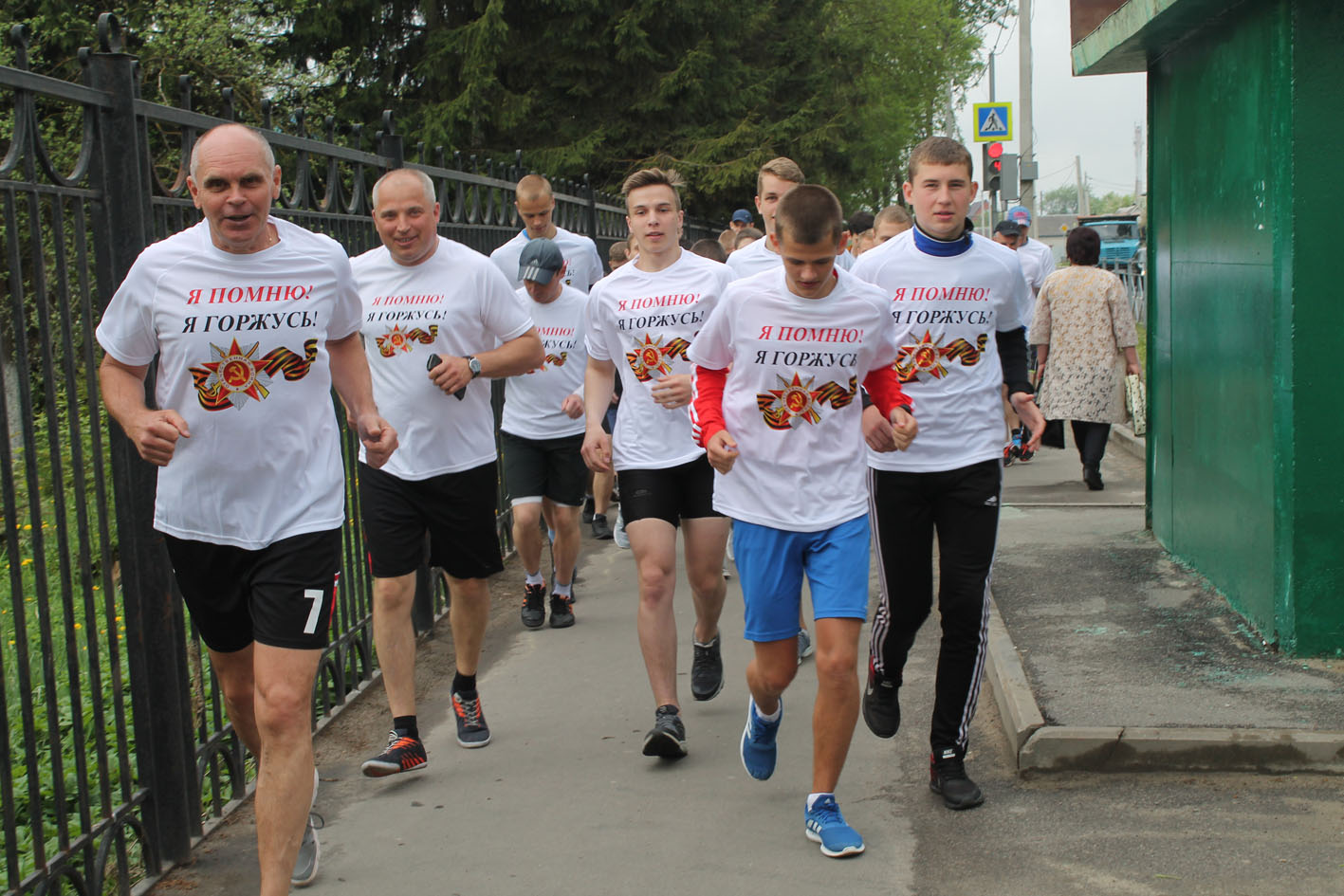 Дистанция забега проходила от средней школы № 4 имени С.П.Лоскутова до Бошинской средней школы. Во время пробега пошел небольшой дождик. Но участников это не смущало, они стойко преодолевали дистанцию в 14 км, останавливаясь только для возложения венков к могилам воинам-освободителям.