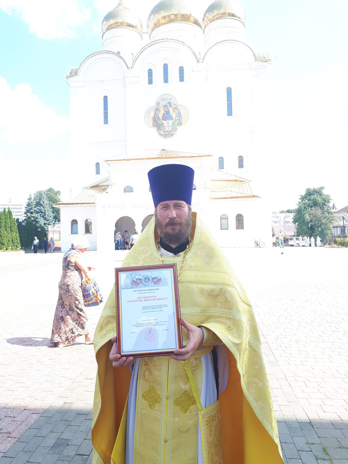 После Крестного хода на площади перед Кафедральным собором состоялось торжественное вручение наград священнослужителям от имени Губернатора Брянской области А.В. Богомаза.