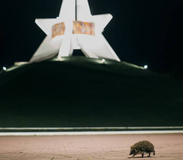Сегодня, 24 апреля, на Кургане Бессмертия сделали фото ежа. Животное спокойно гуляло по дорожкам.