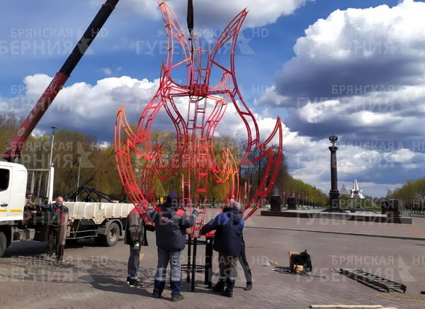 В Брянске в преддверии празднования 75-ой годовщины Победы в Великой Отечественной войне установили необычную инсталляцию. Она выполнена в виде вечного огня.