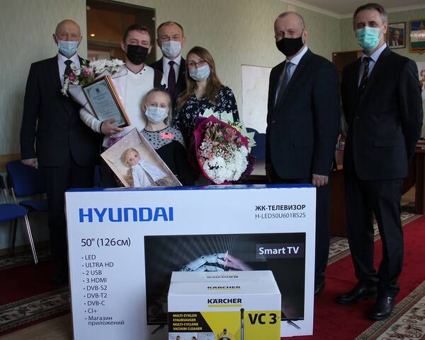 Родителей в торжественной обстановке поздравили замгубернатора Николай Щеглов, зампредседателя облдумы Владимир Пронин и директор департамента семьи Игорь Тимошин. Глава райадминистрации Андрей Москвичев отметил редкость такого явления, как рождение тройни в районе. Последний раз это случилось в 2015 году, тоже в семье из Речицы.Супругам вручили сертификат на получение материнского капитала, выделенного из областного бюджета при рождении тройни. Сумма внушительная – 1 млн 200 тыс. руб., они идет в дополнение к материнскому капиталу из федерального бюджета (639 тыс. руб). Также семья получила в подарок большой плазменный телевизор, пылесос и трехместную коляску.