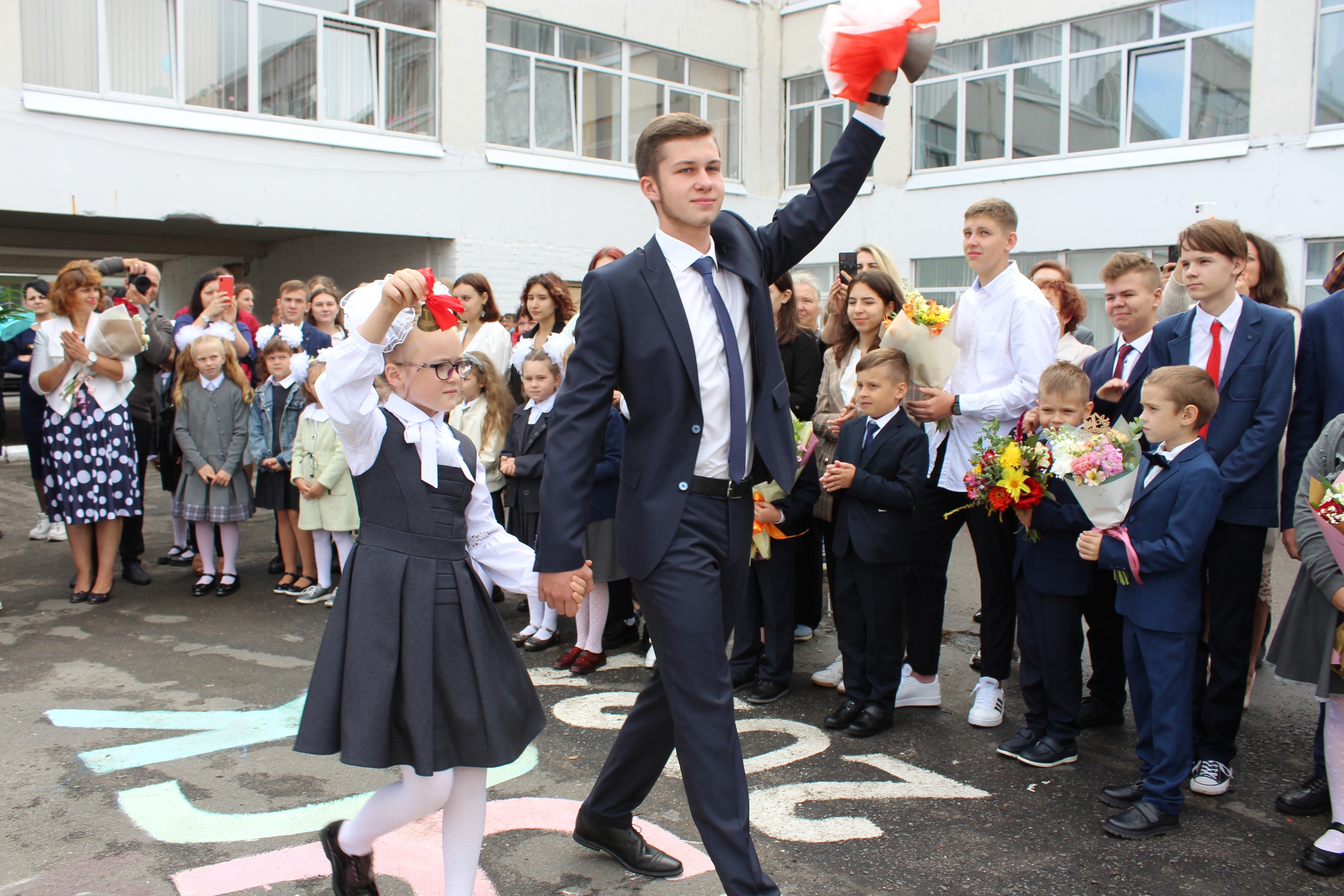 Наступило время первого школьного звонка. Это почетное право было предоставлено учащемуся 11 «А» класса, отличнику учебы, степендиату главы Карачевского района Артему Логвинову и первокласснице Кире Ореховой.