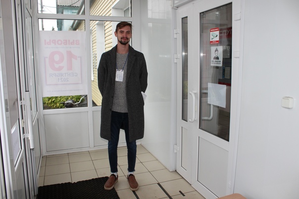 На избирательном участке № 439 в Карачевском МФЦ на входе в здание всех избирателей встречает наблюдатель от колл-центра Кирилл Андреевич Жиляев.