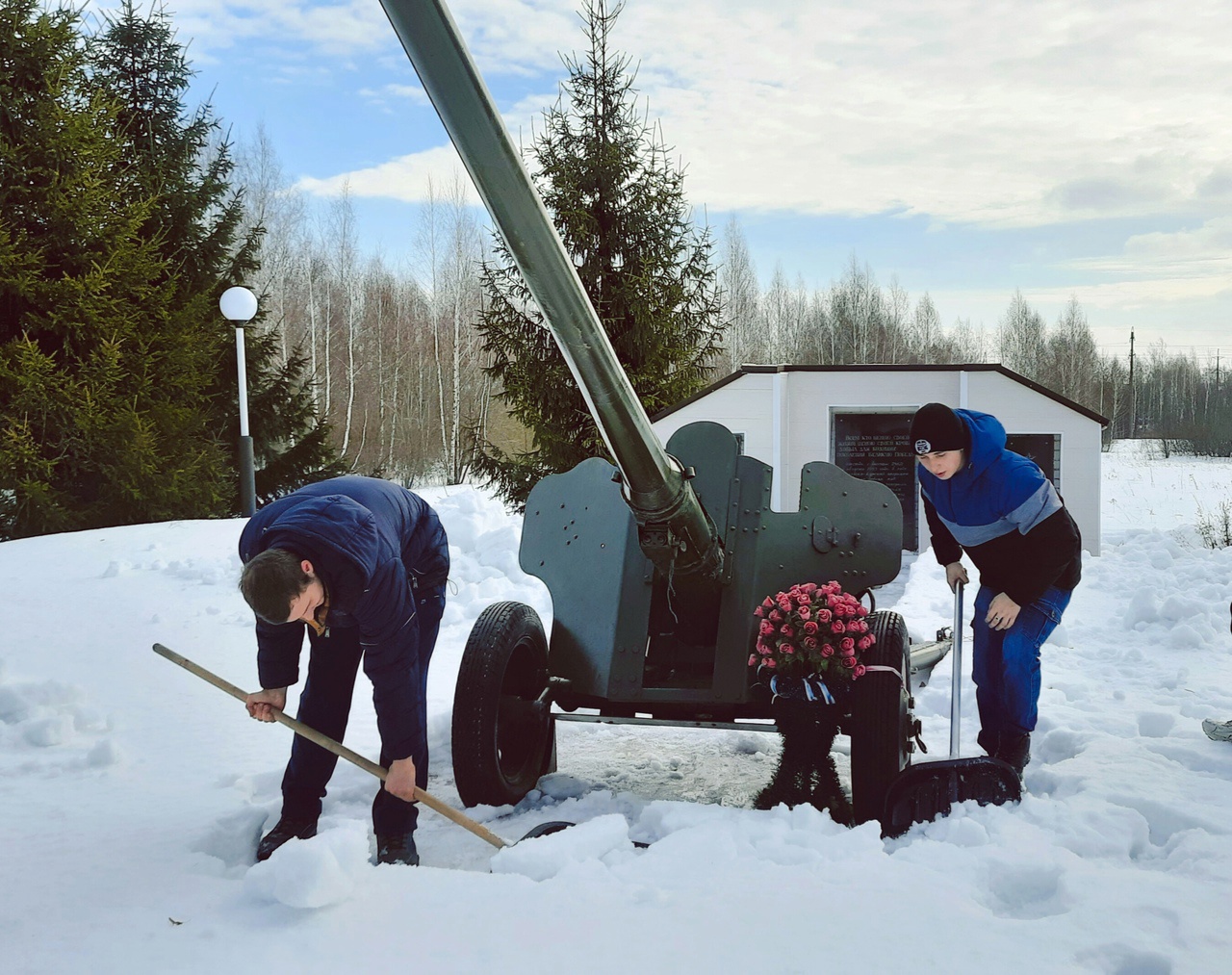 В рамках акции студенты филиала очистили от снега Мемориальный комплекс у деревни Аксиньино .