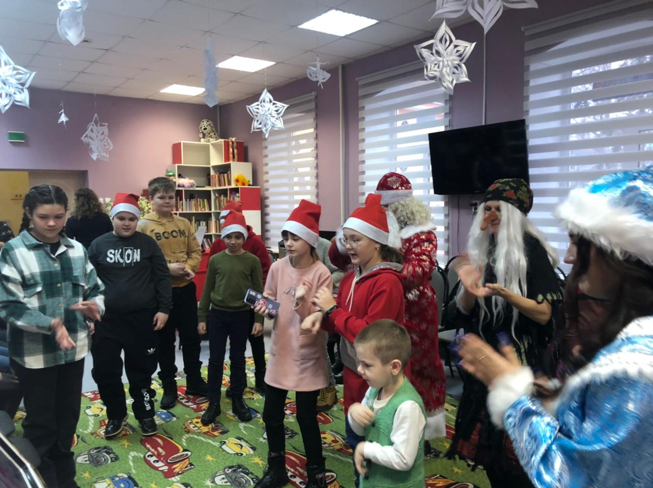 На празднике было много музыки, танцев, веселья, детского смеха. Ребята разгадывали загадки Бабы Яги и Снегурочки, вместе с Дедом Морозом зажигали новогоднюю ёлку.