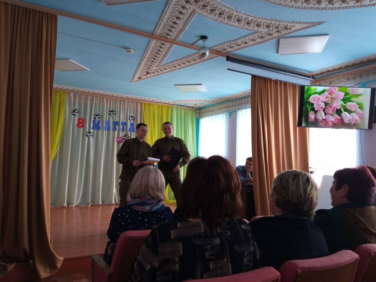 Было место и степу, миниатюрам, подготовили и интерактив. Преподаватель Центра допобразования Никита Бородуля тоже присоединился к поздравлениям, исполнив песню под аккордеон. Военнослужащие подарили женщинам розы.