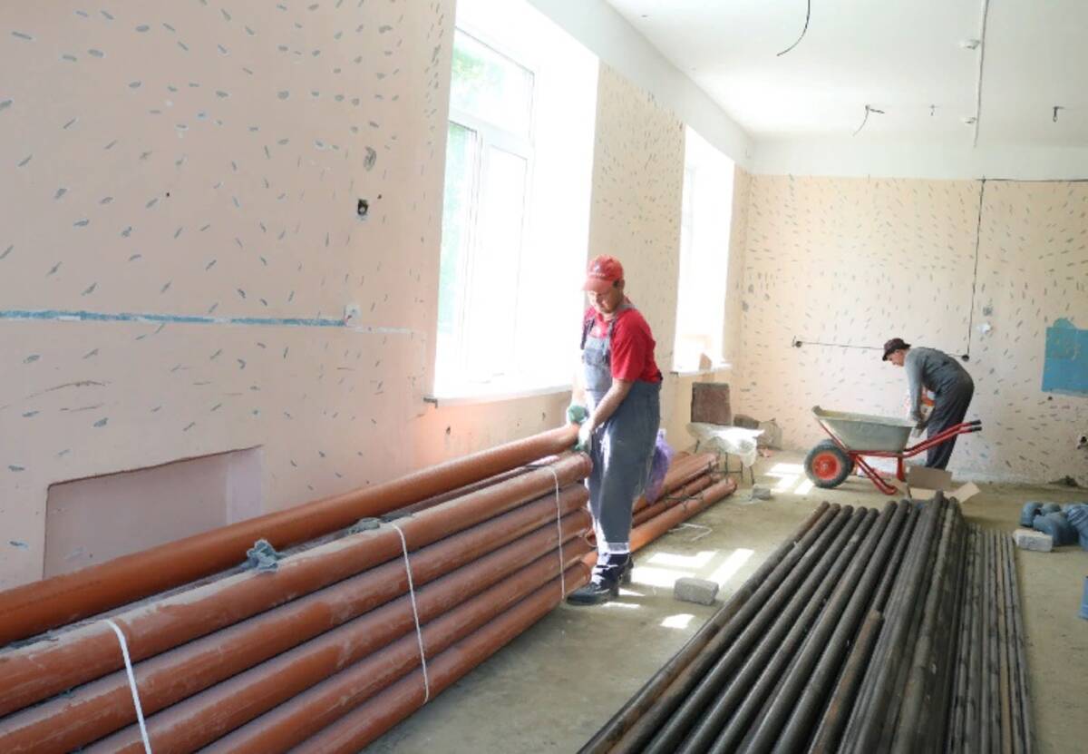 Уже проведена большая работа. Строители демонтировали полы, радиаторы отопления, водоответвление. Сейчас усилия ремонтной бригады направлены на устройство инженерных коммуникаций.