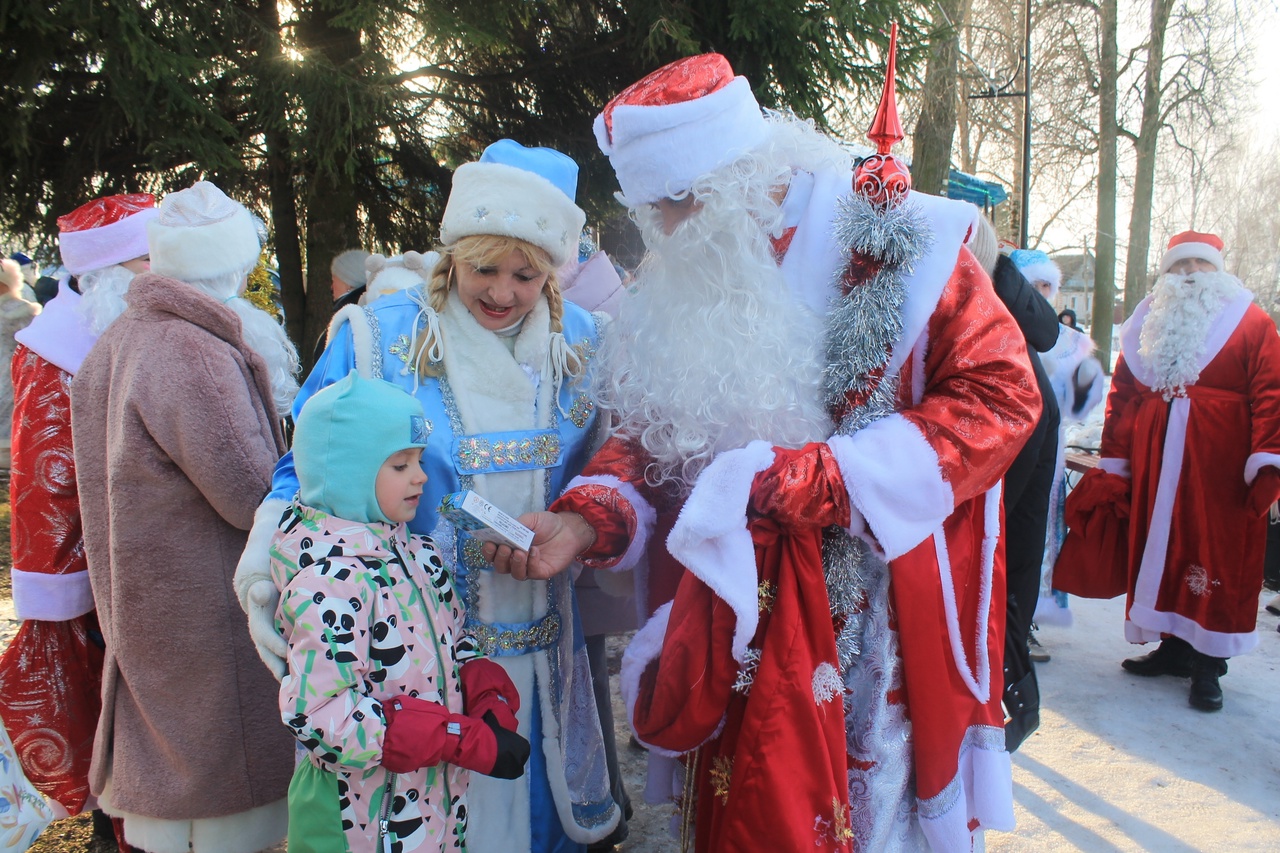 На сей раз открытие главной елки, а вместе с этим Парад Дедов Морозов и Снегурочек прошел в городском парке им. А.Г. Мехедова. Но в этом есть свои плюсы. Наряженное дерево — живое, на корню. Да и в целом парковая зона, в которой множество тропинок, игровых площадок, создавало сказочную атмосферу.