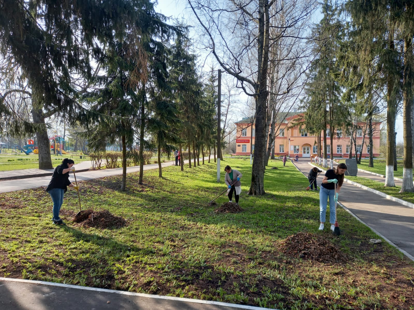 Результат нашей работы — ухоженные деревья на аллеях, побеленные бордюры, скамьи для чтения, выкошенные газоны, цветочные клумбы.