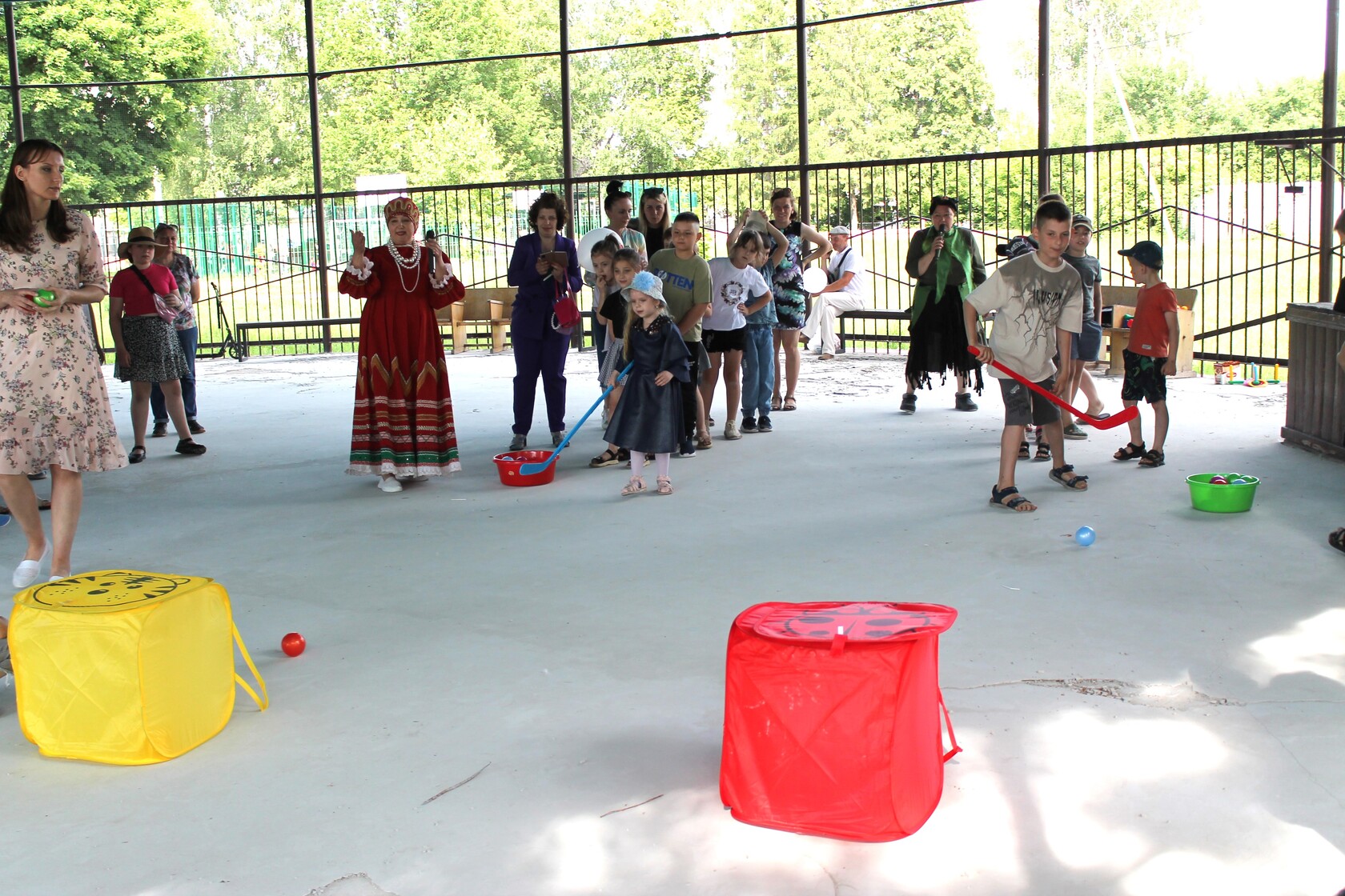 В гости к ребятам пришли всем хорошо знакомые герои русских народных сказок: Василиса Премудрая, Баба-Яга и Кощей Бессмертный. Кощей попытался испортить праздник, но Василиса Премудрая вместе с весёлой детворой не позволили ему это сделать.