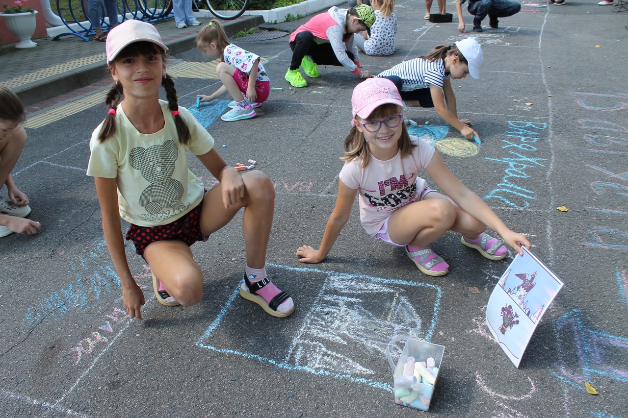 На аллеях библиотеки для юных читателей прошёл конкурс рисунков на асфальте «Мы рисуем наш славный Карачев», где ребята смогли в полной мере проявить свои творческие способности, раскрасив яркими красками аллеи библиотеки. Ребята приняли участие в познавательной викторине.