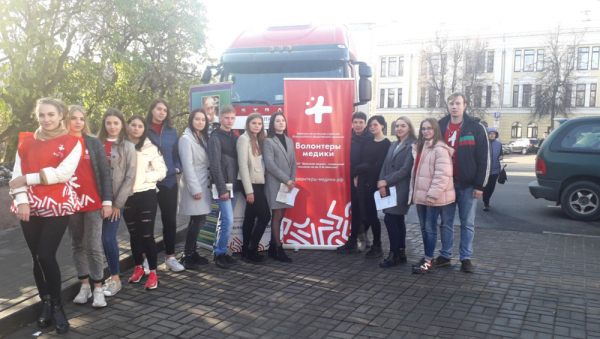 17 октября студенты Брянского медико-социального техникума имени академика Н.М. Амосова приняли участие в донорской акции. Мобильный комплекс областной станции переливания крови находился в центре города – в сквере Карла Маркса. В акции активно участвовали волонтеры-медики. (0+)