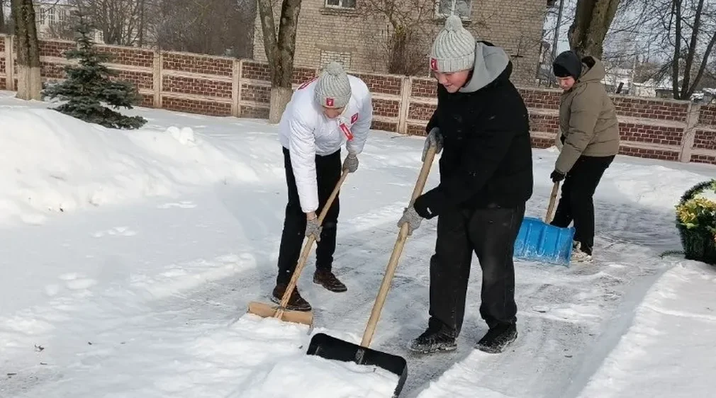 В Комаричах активисты «Движения Первых» расчистили снег к старту Месячника