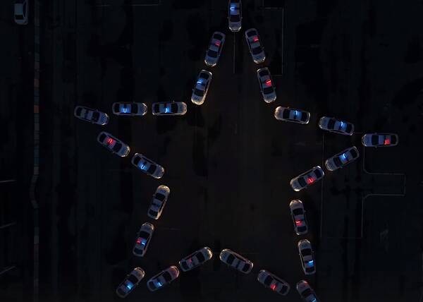 Накануне 9 Мая сотрудники Госавтоинспекции раздавали водителям Георгиевские ленточки на площади Партизан и возложили цветы к памятнику Воинам-водителям. Из патрульных машин они построили светящуюся звезду и буквы «9 Мая».