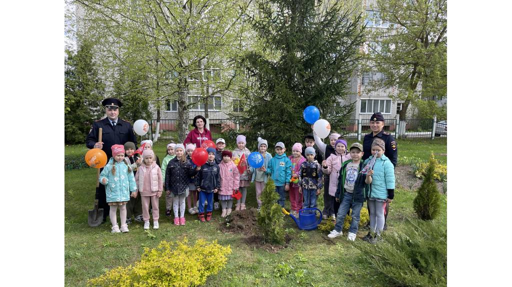 Замначальника линейного подразделения старший лейтенант полиции Владимир Зенькин и старший инспектор по делам несовершеннолетних майор полиции Екатерина Кускова вместе с ребятами и воспитателями детсада «Звездочка» высадили на территории учреждения деревья. Мероприятие прошло в рамках акции «Сад памяти».