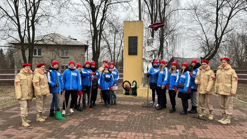 Затем «Снежный десант» вместе с юнармейцами школы приняли участие в благоустройстве памятных для комаричан мест. Они навели порядок, убрали сухие ветки и листву у памятника руководителю подпольной комсомольской организации П.Г. Незымаеву и на братской могиле советских воинов в посёлке Комаричи.