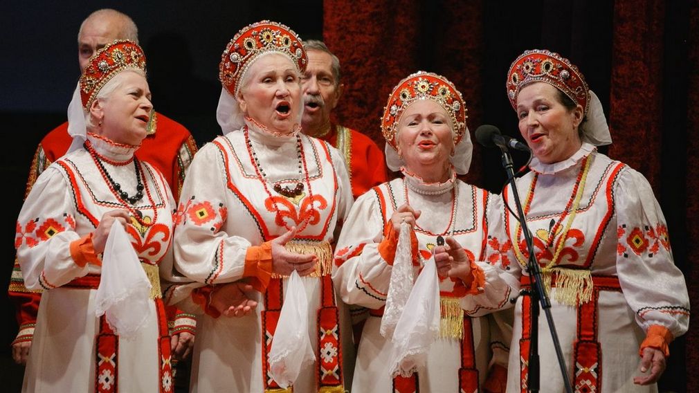 Ансамбль «Ватага» и танцевальный коллектив «Эрклез» выступают в зале «Дружба». Все собранные ...