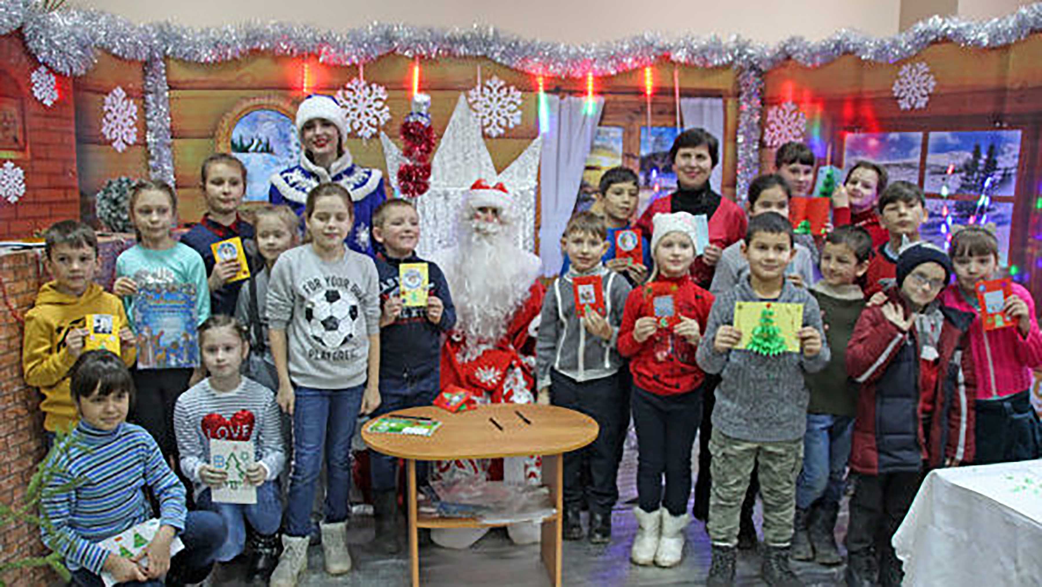 Работники Почепской центральной библиотеки вместе с добровольцами волонтерской организации «Почеп – вместе» организовали мастер-класс, на котором показали ребятам разные способы изготовления красивых новогодних открыток. Дед Мороз и Снегурочка поздравили ребят с наступающим Новым годом и вручили им сладкие подарки и сувениры. 0+
