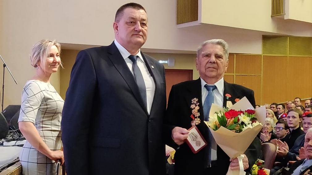 Александр Резунов наградил в честь 75-летия Победы участников Великой Отечественной войны памятными медалями. Юнармейцы вручили ветеранам цветы.
