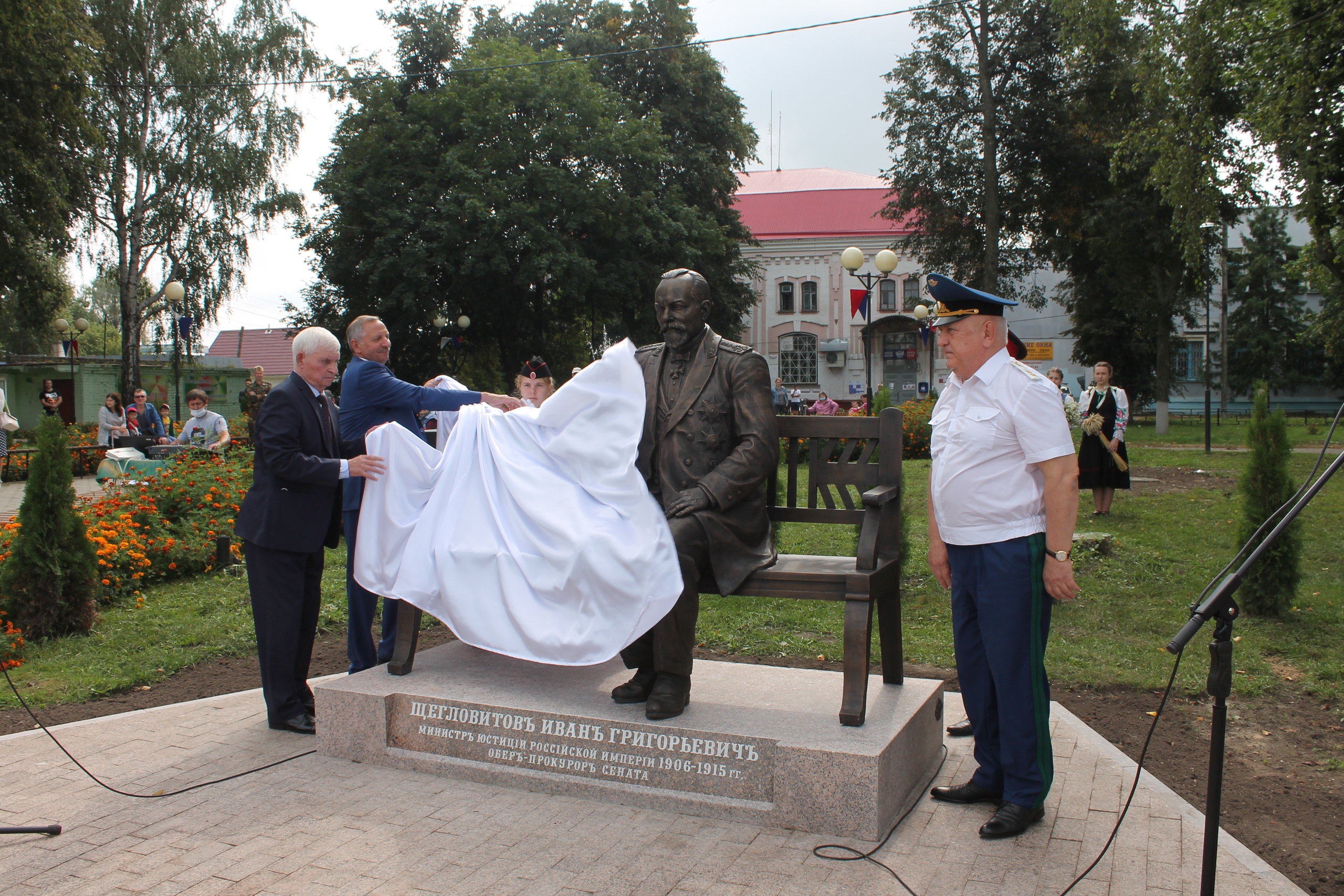 По информации «БрянскToday», 5 сентября в Стародубе открыли памятник известному земляку, выдающемуся русскому криминологу и государственному деятелю, действительному тайному советнику, министру юстиции, генерал-прокурору Российской империи И.Г Щегловитову. Идея увековечивания его памяти принадлежала прокурору Брянской области Александру Войтовичу, а старшеклассники Стародубской школы №3 участвовали в конкурсе программ инициативного бюджетирования и стали победителями. Автор памятника — Заслуженный художник РФ, известный скульптор Александр Ромaшевский. На мероприятии присутствовали прокурор Брянской области, государственный советник юстиции 2 класса Александр Войтович, депутат областной Думы, Герой соцтруда, Почетный гражданин Брянской области Георгий Лобус, врио главы Стародубского муниципального округа Александр Подольный, глава города Тамара Сорокваша, начальник управления минюста России по Брянской области Наталья Рудакова, автор памятника Александр Ромашевский и многие другие.