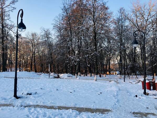 На прошлой неделе по периметру установили более 30 фонарей необычной формы. Здесь также появятся стилизованные скамьи и урны.