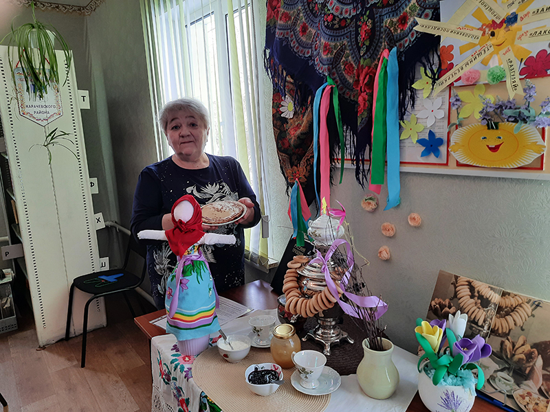 9 марта во второй день Масленичной недели «Заигрыш» читатели и гости библиотеки знакомились с выставкой, на которой можно найти всё об истории праздника, традициях и обрядах, названия каждого дня масленичной недели, рецепты вкусных блинов, пословицы, стихи и поздравления, украшения выставки – самовар с баранками, кукла Масленица, красивые платки, ленточки и яркое солнышко.