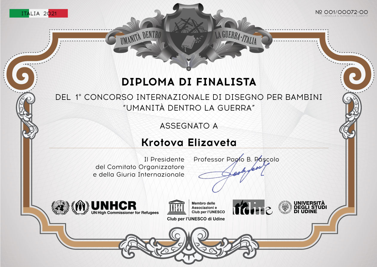 Елизавета Кротова, дочь начальника отделения учёта и комплектования штаба Управления Росгвардии по Брянской области майора Юрия Кротова, стала финалистом 1-го Международного конкурса детских рисунков «Гуманность внутри войны», который проходит под патронатом ЮНЕСКО, при поддержке ООН.