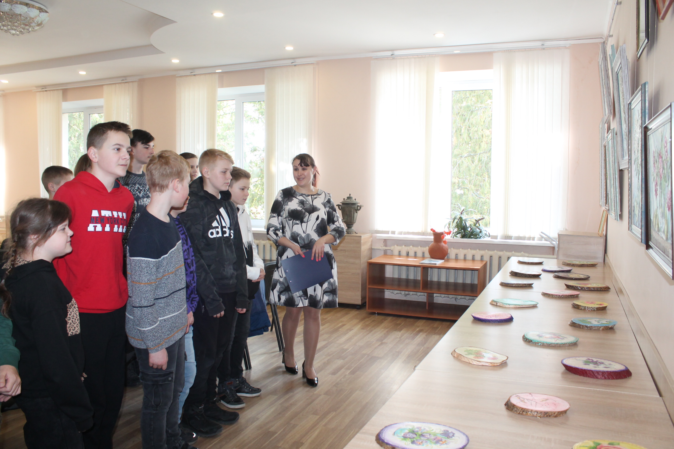 Сегодня в народной галерее районного Дома культуры методист Ольга Стаценко для учеников шестых классов школы им. С.М. Кирова провела экскурсию, которую можно назвать уроком эстетики.