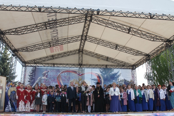 Прозвучали любимые всей страной песни «Пусть всегда будет солнце», «Дорога добра», «Аист на крыше», «Хотят ли русские войны», «Катюша», «От героев былых времен», «Туманы», «Смуглянка» (солист Михаил Морозов). Татьяна Михайловна Андриясова, Людмила Владимировна Пашкова, Нина Васильевна Юрасова по очереди сменяли друг друга на почетном дирижерском месте. Патриотической песней «Славься!» из оперы М. Глинки «Иван Сусанин» сводный хор завершил праздник.