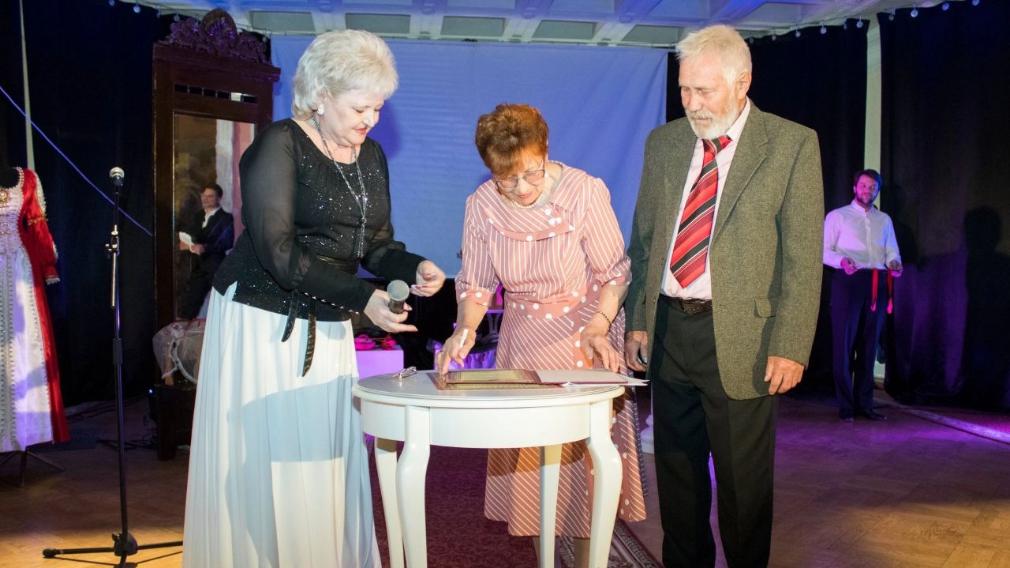 В фойе театра артисты исполнили душевное театрализованное представление «С театром по жизни». Здесь же прошла и церемония заключения ЗОЛОТОГО БРАКА самой театральной семьи Михаила и Нэли Бобровых.