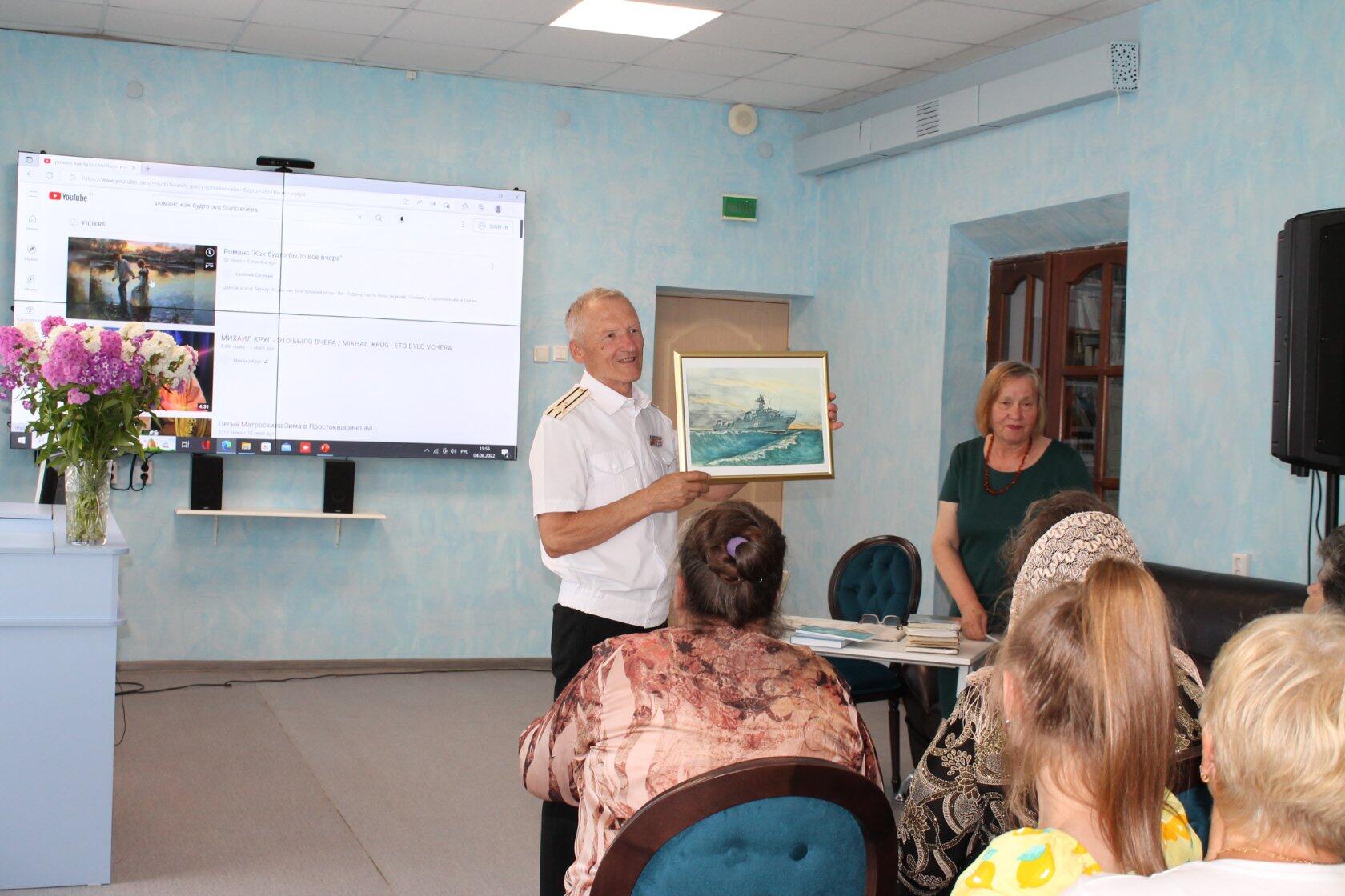 Приятным сюрпризом стало выступление автора двух книг, любезно подаренных библиотеке, нашего земляка, капитана первого ранга Евгения Леонидовича Кондрашова, который сейчас живёт в Севастополе. Но родина его – любимый посёлок Монастырский Карачевского района. Прозаик, поэт и художник, свою жизнь Евгений связал с военным российским флотом. Он является участником боевых действий, воином-интернационалистом, ветераном военной службы, участником операции по возвращению Крыма. Все присутствовавшие с удовольствием послушали романсы на стихи автора. На встрече уже традиционно прозвучали песни под гитару в исполнении талантливого педагога, хормейстера Веры Даниловны Баулиной, написанные ею (их насчитывается более десятка!) на слова карачевских поэтов.