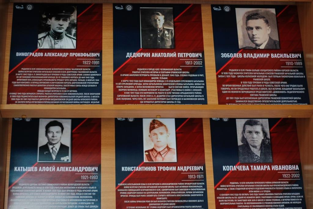 Экспозиция приурочена к Всемирному Дню учителя и посвящена подвигу учителей в Великой Отечественной войне. На фотографиях, представленных в рамках выставки, размещены биографии преподавателей и учителей-фронтовиков, которые, оставив на время научно-педагогическую деятельность, доблестно боролись с врагом на фронтах войны, в партизанских отрядах и подпольных организациях. В этот тяжелый и вместе с тем героический период с невиданной силой проявились мужество студентов, выпускников и преподавателей нашего вуза, их несгибаемая стойкость, высокое чувство патриотизма, величайшая преданность делу победы.