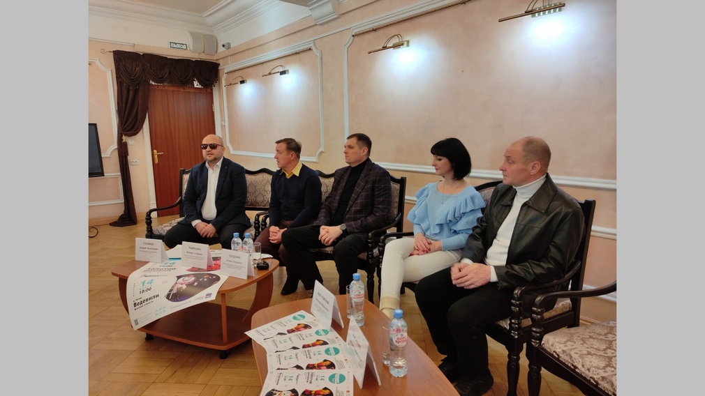 Перед постановкой спектаклей в гостиной областного театра драмы имени А.К. Толстого прошла пресс-конференция с приезжими артистами. В ней участвовали директор областного драмтеатра Андрей Саликов, заслуженный артист России, председатель регионального отделения СТД РФ (ВТО) Михаил Лаврушин, генеральный директор Мариупольского театра Игорь Солонин, артиста Мариупольского театра Наталья Квятковская, а также актер и режиссер Мариупольского театра Сергей Мусиенко.