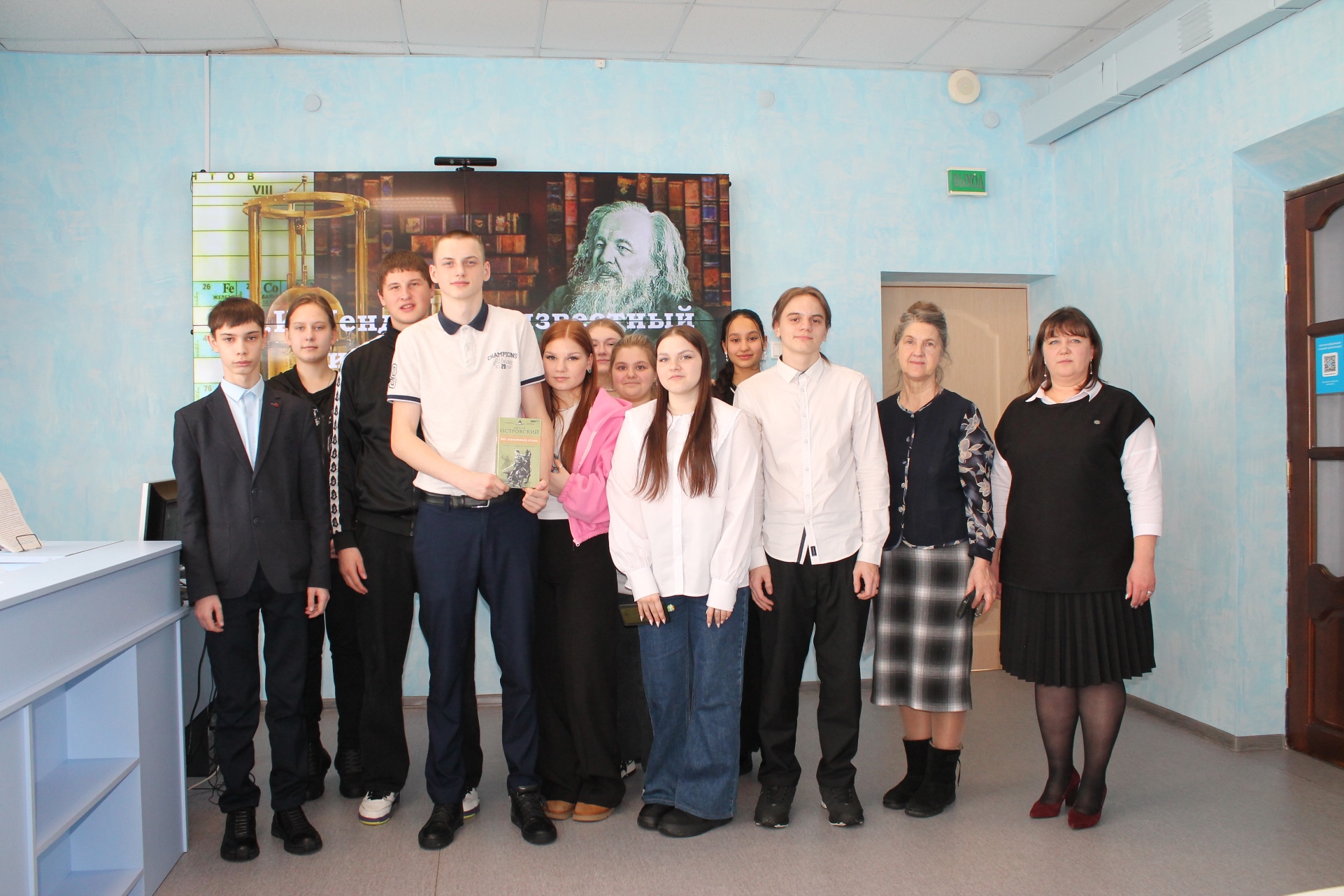 В читальном зале Карачевской районной библиотеки в рамках программы «Пушкинская карта» для учащихся 9 класса средней школы No5 имени И.С. Кузнецова прошёл познавательно-игровой квиз «Д.И.Менделеев: известный и неизвестный».