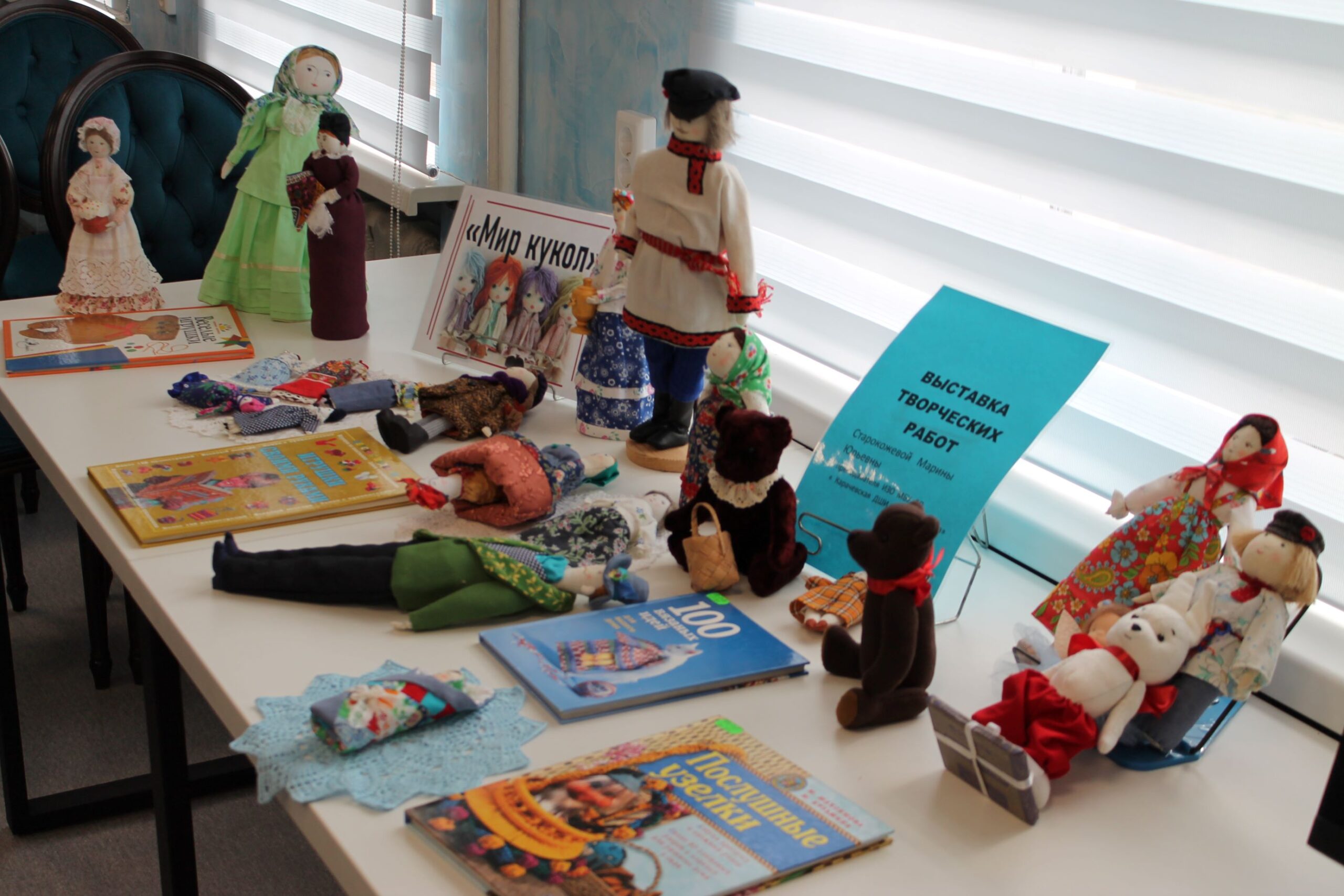 В читальном зале Карачевской муниципальной библиотеки 18 марта прошла презентация выставки декоративно- прикладного творчества «Мир кукол» преподавателя детской школы искусств им. В.Ф. Кольцова Старокожевой Марины Юрьевны.