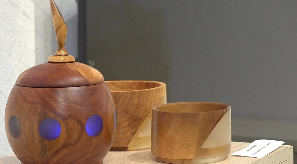 Среди экспонатов представлены разнообразные изделия из дерева: посуда, солонки, сахарницы, блюдца и вазы. Инновационным элементом стало применение эпоксидной смолы, позволяющей сохранять древесину с естественными трещинами и дефектами, придающими изделиям особый шарм.