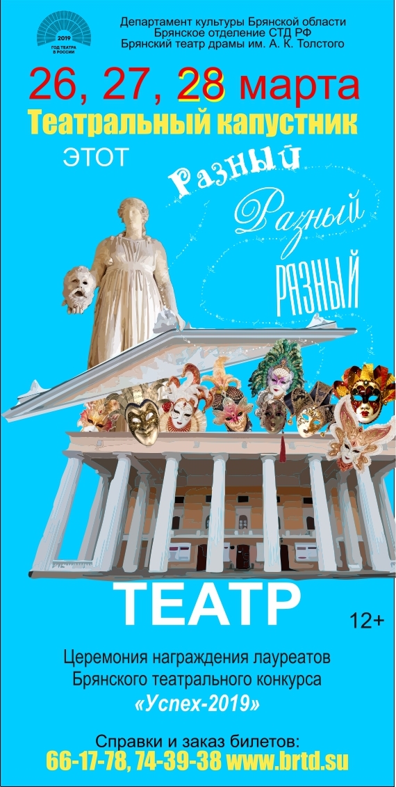 26, 27, 28 марта в Брянском театре драмы им. А. К. Толстого состоятся капустники «Этот разный, разный, разный театр» с участием артистов трех брянских театров.