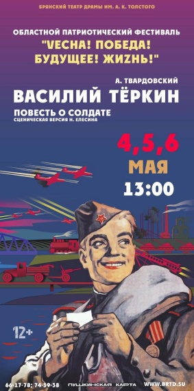 В Брянском областном театре драмы имени А.К. Толстого 5 мая в 13:00 состоится спектакль «Василий Тёркин». Об этом сообщает РИА «Стрела».