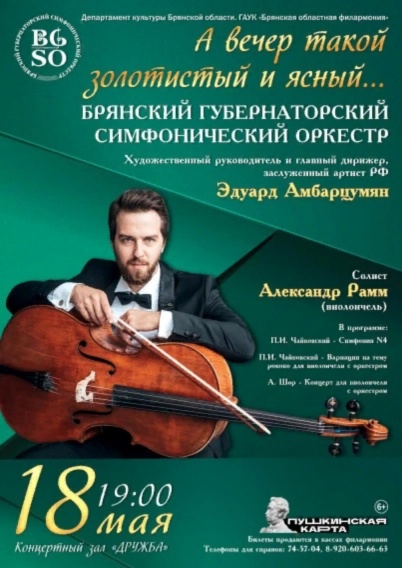 В Брянске 18 мая пройдет концерт Брянского губернаторского симфонического оркестра под управлением заслуженного артиста Российской Федерации Эдуарда Амбарцумяна. Об этом сообщает РИА «Стрела».