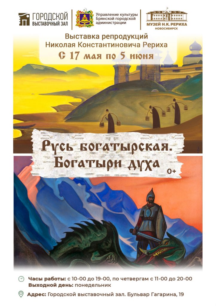 В Брянском Городском выставочном зале 17 мая откроется выставка репродукций художника Рериха «Русь богатырская. Богатыри духа». Об этом сообщает «Брянская губерния».