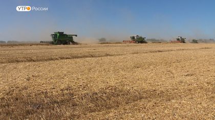почти с трёх тысяч гектаров пашни. Зерна собрано около тринадцати тысяч тонн. Средняя урожайность — сорок три центнера с гектара, что выше прошлогоднего показателя. (0+)