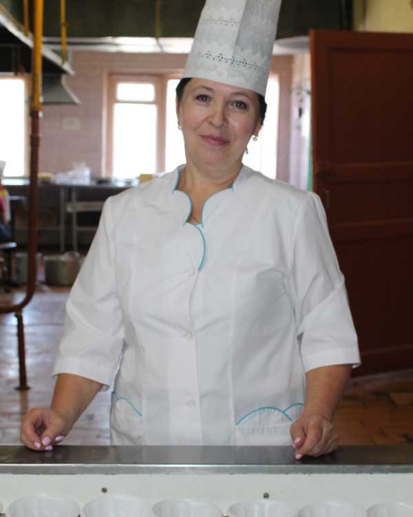 Рассказывая о своей работе и бригаде, Елена Валентиновна все время говорила : » Мои девочки. » Почему? Очень все просто: девочки, говоря современным языком, — это команда единомышленников, готовых подхватить и опробовать любую смелую идею. Разнообразные рецепты салатов, интересные закуски — все это со своими помощницами внедряет в жизнь повар Колесник. Она может приготовить все — начиная от супа и заканчивая сложными десертами.