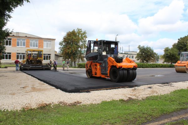 14 августа было уложено асфальтовое покрытие на площадке под корт, на дорожке от стадиона, где будут установлены скамейки, съезды на детскую площадку. Асфальтируют вручную и при помощи техники. 0+