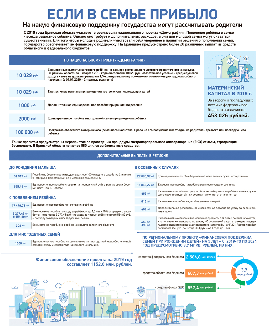 С 1 января 2019 года начал действовать региональный проект «Финансовая поддержка семей при рождении детей», являющийся частью национального проекта «Демография».