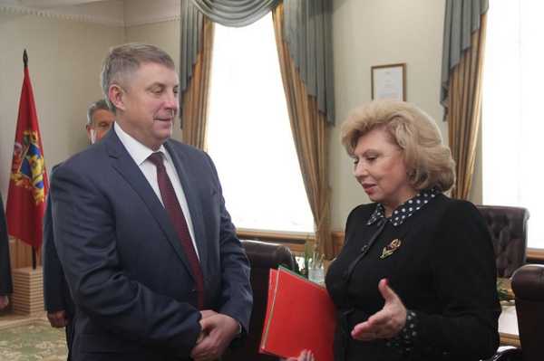16 октября в Брянск прибыла уполномоченный по правам человека в РФ Татьяна Москалькова. Сегодня она встретилась с губернатором Брянской области Александром Богомазом. Обсудили реализацию социально значимых программ.Татьяна Москалькова примет участие в межрегиональной научно-практической конференции «Основные аспекты соблюдения и защиты прав граждан: правовое просвещение и опыт правозащитной деятельности регионов». Она пройдет сегодня в Брянске.