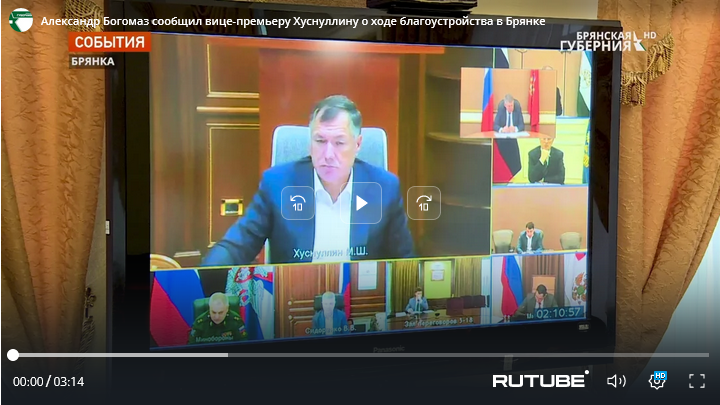 Губернатор брянской области Александр Богомаз рассказал заместителю председателя правительства Марату Хуснуллину о ходе работ в подшефном городе Брянка. Об этом сообщает «Брянская губерния».