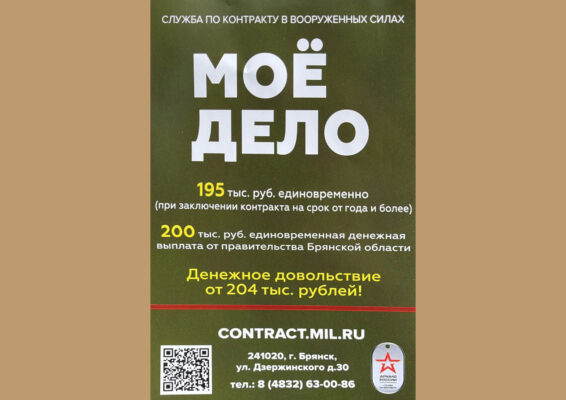 -Мы выезжаем в населенные пункты Брянской области для проведения агитационных мероприятий, — объясняет Василий Рословец, инструктор пункта отбора на военную службу по контракту 2 разряда (г. Брянск), — рассказываем о преимуществах поступления на военную службу по контракту. Так, Верховный Главнокомандующий Владимир Путин утвердил единовременную выплату 195 тысяч рублей, ещё 200 тысяч рублей — единовременная денежная выплата от правительства Брянской области и денежное довольствие от 204 тысяч рублей. Призываем на службу граждан от 18 до 60 с небольшим, отбираем по состоянию здоровья.